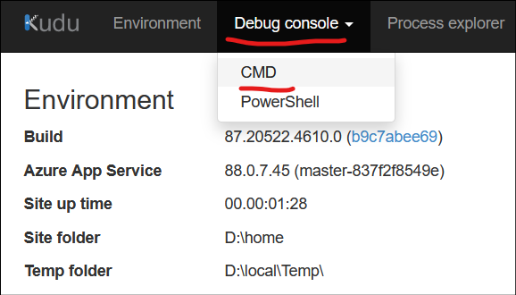 Click the “Go” link, and you’ll be taken to the Kudu Services page for your Function App.